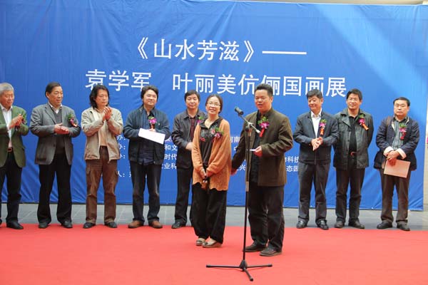 袁学军 叶丽美在画展开幕式 现场致词并向大家致谢.