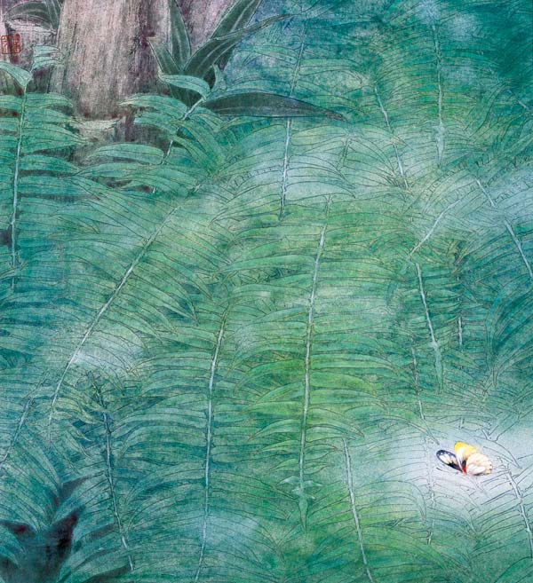 叶丽美与袁学军既是同窗,又是其贤内助,有典型江南女子的贤良淑慧。她早期多习水彩画,后专注于工笔画创作。其作品如其人,灵动秀丽,在融合了西方水彩画水色的轻盈畅意的同时又蕴含着细腻温润的气质,画中风物信步生情、朴雅相溶,工笔情致在随情赋性中得到从容舒展,正如她本人婉丽而素净的性情,这在工笔画中是极难得的。
