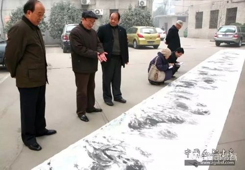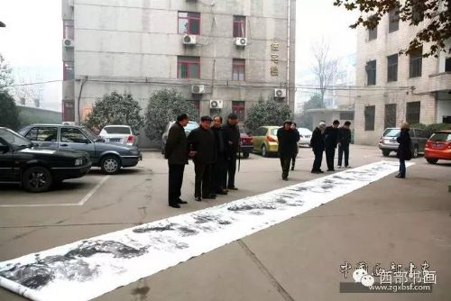 2007年12月10日,陈宏为奥运申办创作的20米长卷在陕西国画院展出,图为陈宏陪同
