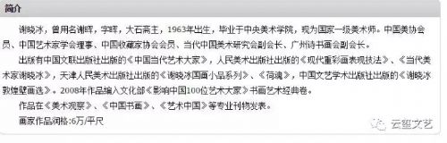 谢晓冰这些年来在进行工笔画,兼工带意,大写意或彩墨绘画创作中,都很好地把敦煌壁画传统水墨和西方后期印象派的色彩融为一体。灵动与鲜活地运用墨与色的微妙变化关系,改变了前人在生宣纸上无法进行重彩塑造的传统。谢晓冰扎扎实实在中国画探索方面,努力脚踏实地地做出了富于艺术创新精神,非常值得令人敬佩,称赞和肯定。