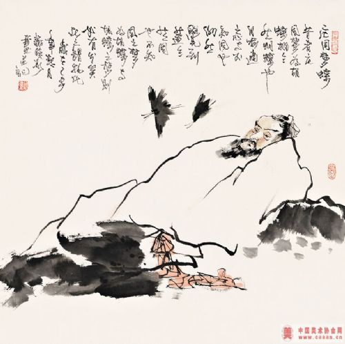 初秋的上午(2014年9月),天微凉,前往番禺探访画家谢晓冰。走进他的画室,映入眼帘的是他画的徐悲鸿、吴昌硕及齐白石画坛大家的作品。不经意间被吸引,仰望片刻发觉,每位先贤那么近,如在身边,形似且神似。再细看谢晓冰的画室,四处干净。一幅尚在创作《庄周梦蝶》在案头,画面简洁,人物适志,意境自得。回至茶桌,他沏了壶滇红,在暖香的茶汤之间,我们的对话自然而然展开。