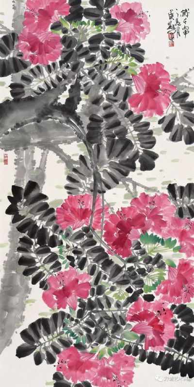 于是,我们有充分理由说他的花鸟画,是中国传统文人绘画的现代延伸。当然,这种延伸从海上绘画时期就开始了,但是侯晓峰把它推入到一个更高的崭新境界。他是在海上绘画的新风尚中,添加了更新的风尚和更新的气象。这就是他对传统绘画的章法、结构进行了符号象征意义上的现代转换使然。标志着这一方面是对在现代审美公众的尊重使然,另一方面,也是他对当代中国文化发展做出的应有的贡献。他是以一种建设性的态度,创造了一个与当代物质文明发展相适应的精神文化形态。所以也可以说,他不是在思考如何守住传统的底线,而是一直在思考为文化的发展做些什么贡献。他是在这个意义上建构起他的崭新风格和崭新特色的。