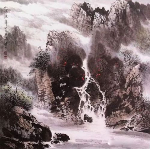 拥有这种境界,画就洗去了姿意作秀,哗众取宠的浅薄,而显得厚重充实,史贵仁的山水画充满了动感,因为融入了思想和感悟,画的内涵丰富多彩,灵韵飞扬,画中有一种若有若无的神秘感,让人久赏不腻,真是“登临无语空归去,半岭松声万壑奇”,有形、有声、有姿、有态、更有气韵和精神,画里诗情自然倾泻而出,可见史贵仁先生的山水画是有情感的。