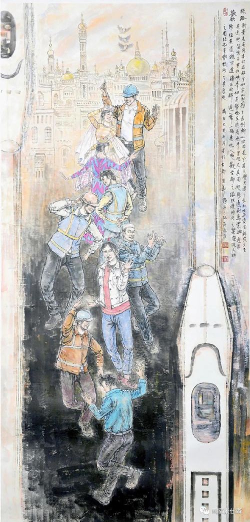 《 一带天堑承大道 一路融通惠四海》——张仕森(国画)