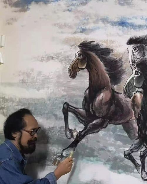 刘院明画马,有精神的寓意,但绝不是刻意而为之,长鞭驰马并不是有意要作精神的教化,而是源于水到渠成的表达,没有功利指向,唯有心动意象,所以看他的马因有飞腾奔驰的状态,可以自然而然地激越人的情怀,不与特定的历史文化背景作牵强的勾连,是直指人心的内涵,放诸四海皆准,中西观赏者皆可得到自然触动!这又是刘院明画的马与徐悲鸿画的马之区别。他师古而不泥古,开拓创新,善于因心作意并与时代发展步伐同拍且做出自然的应答!