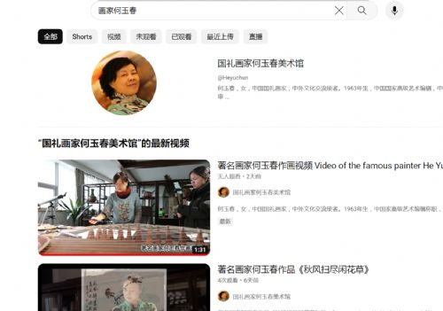 何玉春美术馆上线YouTube视频网,为坚定中国文化自信,传播中国文化,推动人类文明交融,推动社会进步注入了新动力。愿中国传统绘画的光芒在YouTube的舞台上闪耀,愿艺术的友谊之花为全球观众带来更多的文化体验和人生启迪。