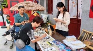 雅集活动对艺术参与方式进行了前瞻性的策略,精心设计了互动体验区。雅集是艺术殿堂也是可触可感的公共课堂。将艺术创作与展览纳入同一空间,游客并非被动的参观者,通过观摩艺术家的创作过程,深度理解作品内涵,同时大大激发了普通群众的创作热情。拼布艺术家曾婕展示了刺绣技法技艺,在刺绣布艺之上用水晶勾勒能量图形,为空间注入平衡、疗愈力量,艺术家发挥智慧与巧思,将传统技艺设计制作为具有美学价值的艺术品。青年插画师钟鲤蔓指导游客在创意小卡上即兴涂画,尽情体验笔墨雅趣。往来群众跃跃欲试,创作区更是排起长队。这些新颖先锋的艺术形式打破了传统观展的界限,让游客在亲手创作中感受艺术魅力,将艺术的种子悄然播下。