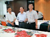 齐建民(中)同中国著名牡丹画家曲生刚(右一)及河南大华书画院院长孙耀和在无锡