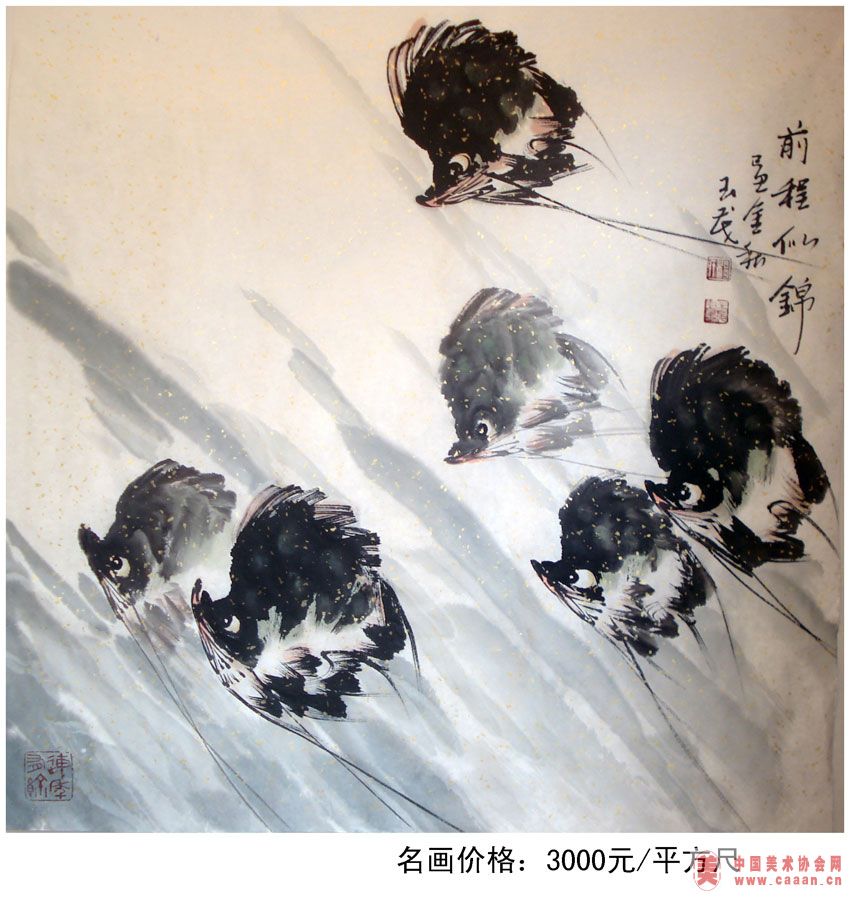 | 画家杨玉茂官方网站:http://yangyumao.caanet.com.cn 画家杨玉茂 “江北杨鲤鱼 ”杨玉茂简介 杨玉茂,字兰田,墨子故里人,生于1960年,大学学历,国家一级美术师,在广泛吸收传统绘画技法的基础上,大胆创新,作品在省、市、地区多次展览并获奖,尤擅画鱼,跃跃飞天、栩栩如生、人称“江北杨鲤鱼”。有不少作品参加泰国、新加坡等国家和地区的友人收藏和展出,作品《吉祥如意》图,被编入《二十世纪中华画苑掇英》大画册,作品《鱼乐图》于98年5月在新加坡共和国获得特等奖,并颁发荣誉证书,作品《六顺图》在海峡两岸文化交流名画展中被评为亚太地区名画书画“金奖”,《前程似锦》被编入《中华艺术学会亚太地区名家画书画集》。 作品获国内奖26次,获国际奖13次,并入编书籍36部。本人系新加坡共和国新神州艺术研究院高级画师,黄河文化艺术研究院副院长,中国美术家协会山东省美协会员,中国美术家协会第三届中国画高研创作室画师。 润格:5000元/平尺 画家杨玉茂作品 更多画家杨玉茂作品欣赏>>
