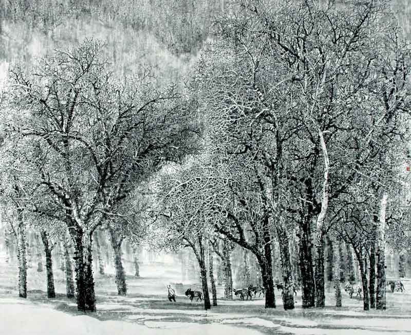 | 画家张东林官方网站:http://zhangdonglin.caanet.com.cn 画家张东林 张东林,河南郸城人,定居北京,从事中国画研究和创作!中国美术家协会会员,中国人民大学艺术学院张东林工作室导师,教授,清华大学美术学院张东林工作室导师,国家一级美术师,中国百家金陵画展金奖获得者。 出版个人专著专集有: 《当代名家写意山水---张东林》--2007年 北京工艺美术出版社 《当代实力派画家艺术研究---张东林密体山水》-2008年 北京工艺美术出版社 《名家名作---张东林密体山水作品欣赏》--2008年 中华国际出版集团 《当代实力派山水画名家---张东林》-2008年 当代书画家杂志社 《中国山水画名家---张东林》(韩语版)-2008年 图书出版瓦署 《当代名家写意山水画库---张东林》-2009年 北京工艺美术出版社 《国画名家经典---张东林》-2010年 天津人民美术出版社 《中国当代山水画名家作品集---张东林卷》-2010年 北京工艺美术出版社 《当代中国山水作品集---张东林》-2011年 北京工艺美术出版社 《当代实力派画家---张东林画集》-2012年 书艺出版社 《当代实力派画家-张东林水墨密体山水》-2011年 书艺出版社 《走进中原-张东林密体山水》-2012年 中华国际出版集团等 《著名密体山水画家-张东林作品收藏》-2014年 中国文艺学术出版社 《张东林中国画获奖作品选》-2014年 南方美术出版社 《家园-张东林密体山水画集》-2014年 南方美术出版社 主要展览: 1996.国画《板桥归牧》被新加坡艺术博物馆收藏; 2000.国画《春酣》参加中国美协纪念《毛泽东延安讲话》全国美术作品展; .国画《金秋太行》参加中国美协新世纪中国画精品大展; .国画《侗寨余晖》获中国文联主办的全国书画大展铜奖; 2001.国画《太行秋色》获中国文联二十一世纪全国首届书画篆刻大赛银奖; 2005.国画《圣地麻田》参加中国美协抗日战争60周年中国画大展(中国美术馆); .国画《鸡毛信》参加人民日报社、中国文联、中国美协、抗日六十周年大型书画展(中国军事博物馆); .国画《房山人家》参加中国美协第十六届国际造形展美术特展; .国画《板桥人家》获由中国美术馆,中国文学艺术基金会主办的"黎昌第三届青年中国画年展铜奖(中国美术馆); .国画《前平人家》参加中国美协太湖情提名展; .国画《泛区古道》参加中国美协2005年中国画精品大展; .国画《房山人家》获首届中国美术家协会网网上画展优秀作品奖; 2006.国画《回家》被中国美术家协会网收藏; .国画《西平古道》获中国美协黄河壶口赞中国画提名展优秀奖; .国画《泛区秋韵》参加中国美协第六届工笔画大展(中国美术馆); .国画《房山情韵》获中国美术馆、中国文联青年画展二等奖(中国美术馆); .国画《皖南人家》获黎昌第四届青年中国画年展二等奖(中国美术馆); .国画《豫东二月》参加中国美协2006全国中国画大展; 2007.国画《泛区故道》获2007·中国百家金陵画展金奖(江苏美术馆); .国画《房山雪韵》参加2007纪念黄道周全国中国画提名展; .国画《泛区暮归》参加2007年全国中国画精品展; .国画《雪韵》参加2007年全国首届草原情中国画作品提名展; 2008.国画《冬韵》参加2008年当代中国书画名家精品集特邀作品展; .国画《游击队之歌》获中国美术家协会中国画创作展优秀奖(中国军事博物馆); .国画《房山人家》参加2008年纪念改革开放30年繁荣发展和谐文化美术作品展; .国画《农家乐》参加2008全国中国画名家邀请展; 2009.国画《佛香阁》参加2009全国“中华名胜”山水画名家邀请展; .国画《暖冬》参加第五届中国美术家协会会员中国画精品展; .国画《溪山清远》参加第二届中国工笔山水画展(中国美术馆); 2011.国画《冬韵》参加第六届中国美术家协会会员中国画精品展; .国画《泛区故道》参加中国百家金陵画展(法国卢浮宫) .国画作品参加百家金陵金奖作者邀请展(南京诸子艺术馆) 2012.国画《尚志县传说》参加庆祝中国人民解放军建军85周年全国美术作品展暨第12届全军美术作品展(中华人民共和国文化 部主办); .国画《即将逝去的绿荫》参加2012·第五届中国北京国际美术双年展(中国美术馆) .张东林密体大展在北京大千画廊美术馆展出; .张东林密体国画大展在北京荣宝斋美术馆隆重展出(北京荣宝斋美术馆); 2013.国画《惊蛰》参加第四届全国中国画展; .中国国家画院"艺术·经典"优秀作品展(中华人民共和国文化部主办); .大家之路-当代名家邀请展(中国国家画院美术馆) .国画《即将失去的绿荫之三》参加第十届中国艺术节·全国优秀美术作品展(中华人民共和国文化部主办); 2014年张东林全国巡回展: 第一站:北京现代收藏艺术馆;第二站:厦门张雄书画院美术馆;第三站:泉州泓翰美术馆;第四站:广东陈树人纪念馆;第五站:北京 一得阁丹凤朝阳美术馆;第六站:北京大千画廊美术馆;第七站:广东南方美术馆;第八站:山东潍坊; 画家张东林作品 更多画家张东林作品欣赏>>