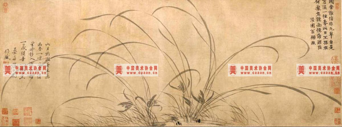 | 画家赵孟坚官方网站:http://zhaomengjian.caanet.com.cn 赵孟坚(1199—1264年),字子固,号彝斋,浙江海盐人。宋宝庆二年(1226年)进士,官至翰林学士。擅画水仙、梅、兰、竹石。梅学扬无咎,竹师文同,并将文同画墨竹的笔法用于画墨兰。其墨兰画法对元、明、清画坛影响很大,被推为墨兰宗师。 画家赵孟坚作品 更多画家赵孟坚作品欣赏>>