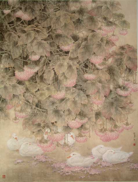 | 画家朱明贵官方网站:http://zmgart.caanet.com.cn 画家朱明贵 朱明贵 祖籍河南,广东省美术家协会会员。 2003年就读于广州美术学院,受教于周彦生教授。 2003年1月28日在广州画院和陈永锵、许固令举办花鸟画联展。 2005年1月15日在广东画院举办个人画展。 2005年8月4日在云南省博物馆举办画展。 2008年4月27日在日本东京举办个人画展。 《冬日暖阳》入选“和谐家园 ”全国工笔画作品展。(2008年) 《花间》入选全国小幅工笔重彩作品展。(2007年) 《春江水暖》入选第三届全国中国画展。(2007年) 《醉花荫》入选全国第六届工笔画大展并被收藏。(2006年) 《故乡情》入选广东省美协成立50周年美术大展。(2006年) 《沐春》入选广东省第四届中国画展。(2005年) 《繁花正茂》入选建国五十五周年广东省美术作品展(2004年) 《清香四溢》特邀参加纪念杨靖宇将军百年诞辰书画名家作品展。(2004年) 《富贵春雨》入选中央电视台书画展并被收藏。(2003年) 《梦绿岭南》特邀参加振兴中华书画展。(2002年) 《菊》参加韩.中和平杯书画艺术国际联展。(2002年) 《东风送暖》参加大韩民国画艺大展。(2000年) 《高秋》入选《海内外河南籍著名书画家作品集》。(1993年) 2006年《朱明贵画选》出版。 画家朱明贵作品 更多画家朱明贵作品欣赏>>