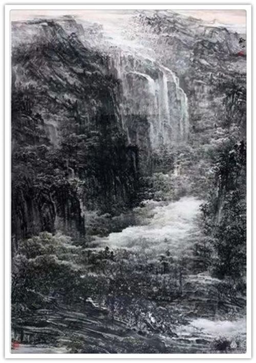 翻开胡江老师的画册,走进一片沉雄朴茂、大气堂堂的天地。山峰巍然矗立,高耸极天;云烟迷蒙氤氲,空灵清润;树木葱郁勃发,生机一片;点景人物寸小,融于山水之中。观画者不禁为画中的气象浑沦,元气淋漓所涤荡,唤起古今之间、天人之际的时间维度的深邃感与宇宙意识的辽阔感。这一切,来自于胡江老师善运黑白之道,挥胸中造化,蕴时代之气,融南北之风,创造出沉实苍润、朴茂清秀的胡江风格。