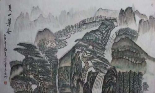 1996年作品《山寨春早》参加中韩两国书画展;
